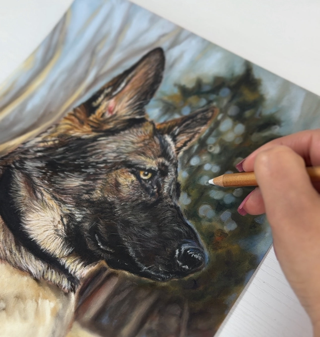 Soft pastels are a fine art, chalk medium. By adding multiple layers of chalk it creates a highly realistic and vibrant effect. Pastels come in many forms such as pencil, stick and pressed powder form. I use all 3 types to create different textures, fur types and fine details. I use many tools to blend the chalk including Sofft sponges, tortillons and blending stumps. Each portrait is drawn on the highest quality pastel paper available on the market, Pastel Mat. It has a unique texture that is velvety and lightly abrasive to hold the layers of pigment tightly without the need for fixatives. This paper is also acid-free which makes it archival quality to ensure longevity and the colors stay vibrant for years to come!