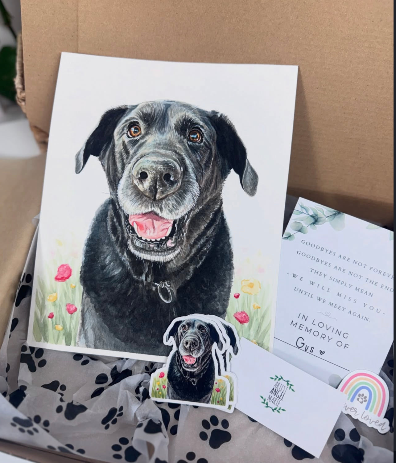 If your pet or the pet you are commissioning has crossed the rainbow bridge- select my memorial gift packaging option. This option adds a special memorial card with your pet's name to honor their beautiful life and memory. This option is perfect when sending your condolences to a friend/family member who have lost their pet or to honor your beloved pet 🤍
